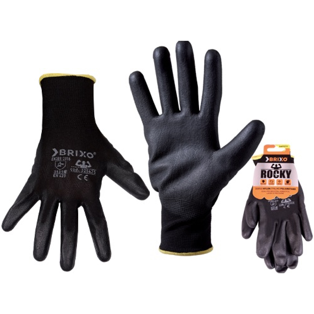 Dorso nylon, palmo poliuretano. Leggero elastico, ottima sensibilità tattile, forma ergonomica. Utilizzi: industria elettronica, manipolazioni di precisioni, laboratori fotografici, industria automobilistica, industria cosmetica.