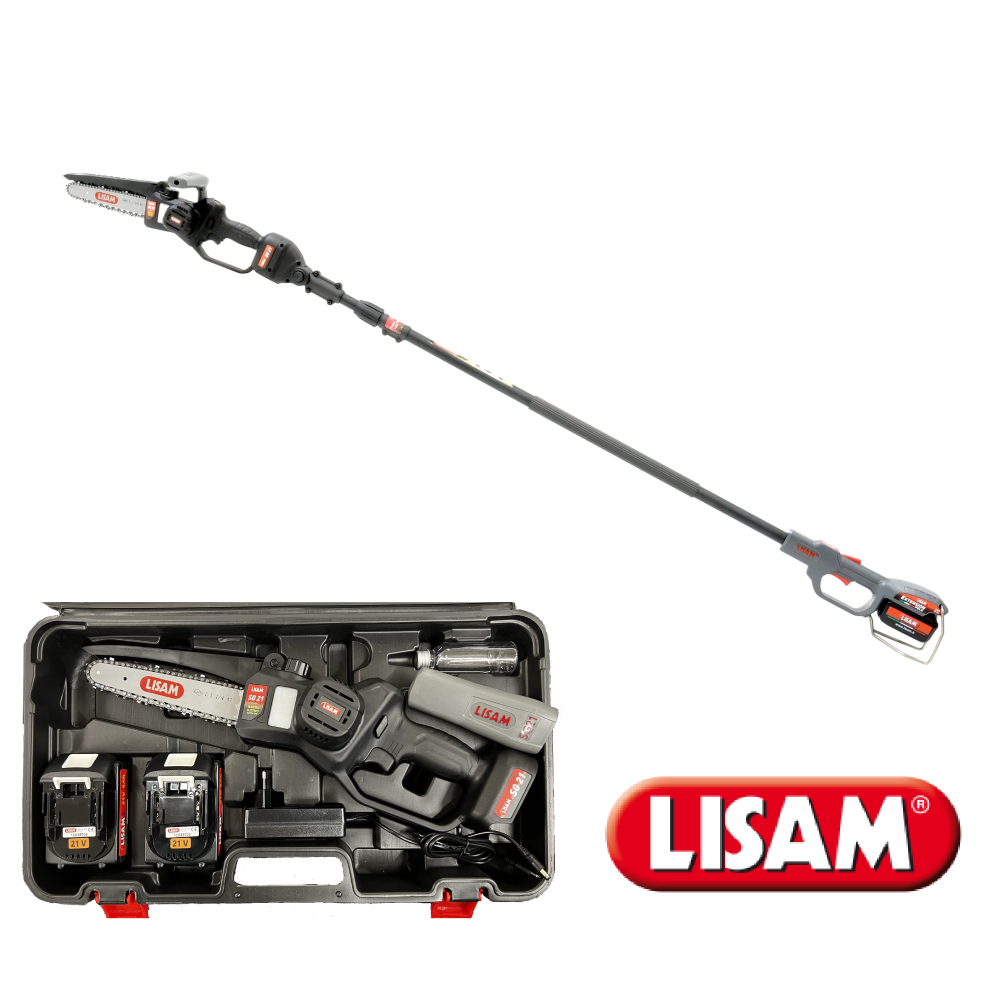 Seghetto a batteria LISAM SG 21 valigia 2 batterie asta telescopica 175-235 cm